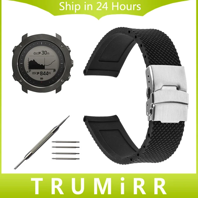 | [해외] 24 미리메터 실리콘 고무 손목 suunto 트래버스 시계 밴드 스테인레스 스틸 안전 버클 스트랩 메쉬 수지 손목 팔찌 블랙 |