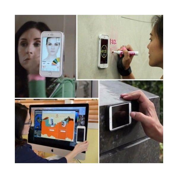 ガラスや鏡などの凹凸の無い平面状の表面にそのまま吸着! 平面にくっつく、今話題で大人気のiPhoneハードケースです。
