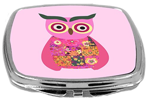 Rikki Knight Compact Mirror, Pink Owl Patchwork