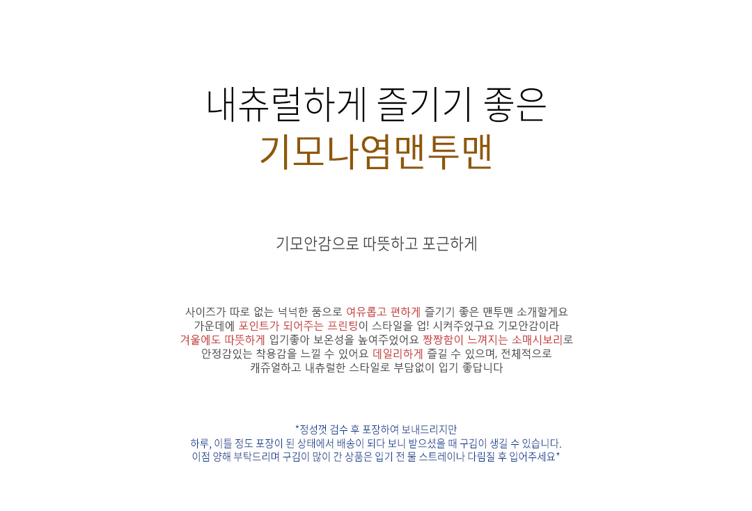 .같은 사이즈라도 체형에 따라 핏감이 조금씩 다를 수 있습니다.