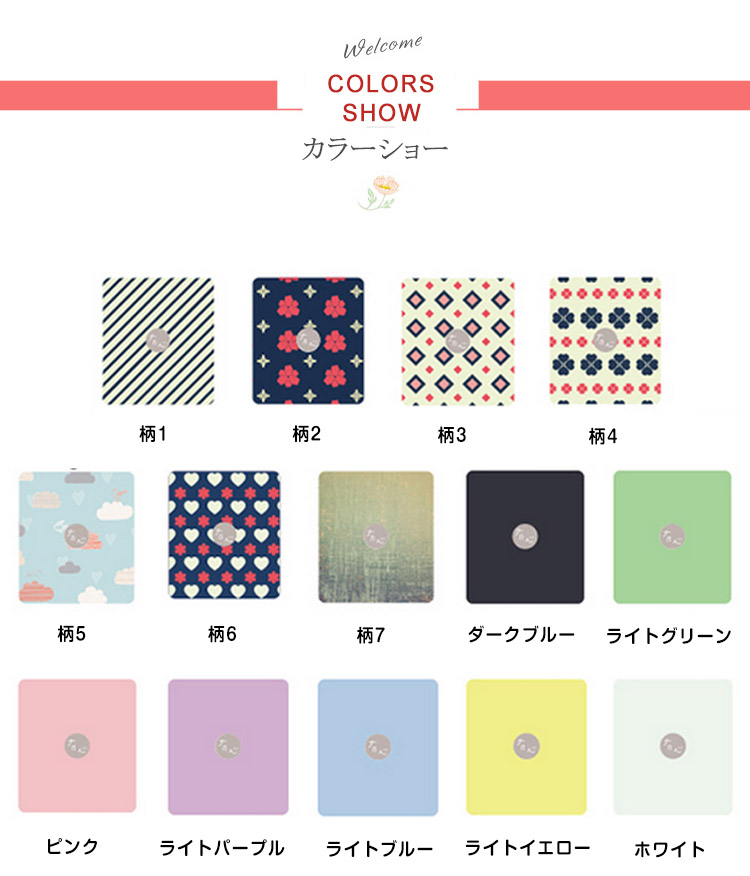 | 色 | 柄1 柄2 柄3 柄4 柄5 柄6 柄7 ライトグリーン ホワイト ライトブルー ライトイエロー ダークブルー ピンク ライトパープル |