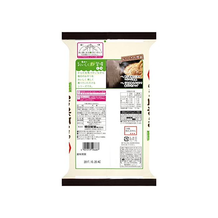 원재료:멥쌀 미(미국산)고, 멥쌀 현미 가공품(국산)고, 식물성 기름지(참깨를 포함한다)고, 참깨,식염,분말 간장(대두를 포함한다)고, 화이트 페퍼,설탕,음식물 섬유,담백 가수분해물(닭을 포함한다)고, 조미료(아미노산등)고, 식물 레시틴(대두 유래)고, 산화 방지제(비타민E)고, 폴리 글루타민산,카로 치노 이 드 색소