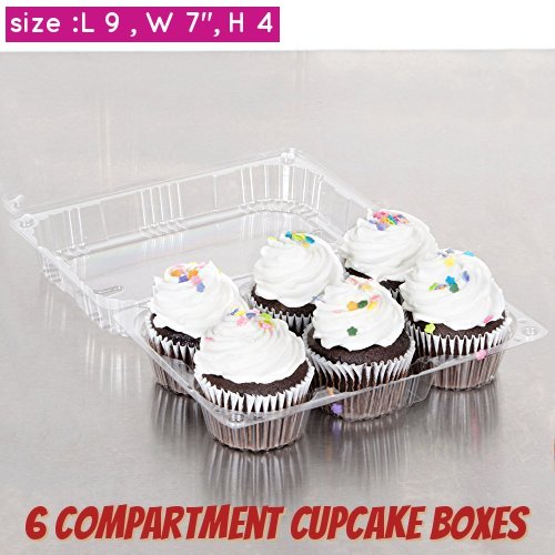 STURDY Designed to hold cupcakes in place Crystal Clear High Quality Plastic Cupcake Boxes,Designed to hold cupcakes in place 6 compartment cupcake containers