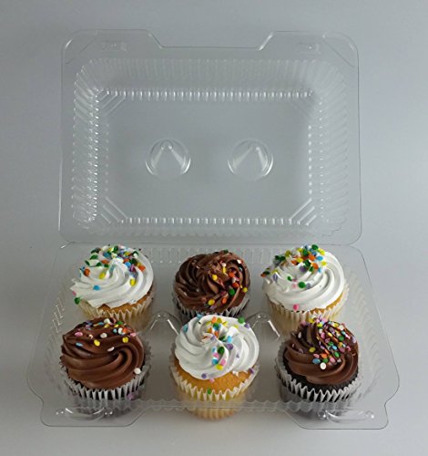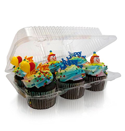 ✔ IDEAL Holds 6 Cupcakes or Muffins, Easy to Close...Easy to Open Superior Locks which stay Closed. Disposable, but can be reused several times. The back hinge will not break! disposable cupcake containers