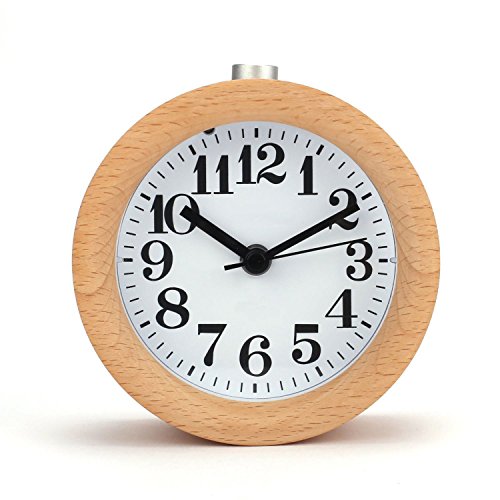 Classic Small Round Silent table Snooze beech Wood Alarm Clock with nightlight