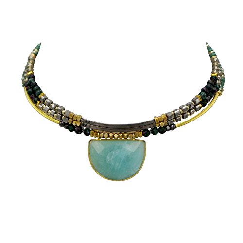 Fashion trending choker necklace with a natural semi precious gem stone pendant