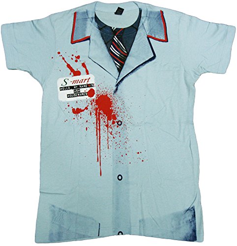 Product DescriptionAsh's bloody s-mart uniform from army of darkness on a fitted jersey men's t-shirt0