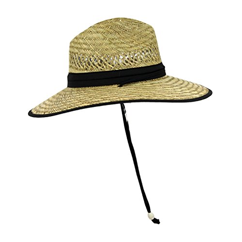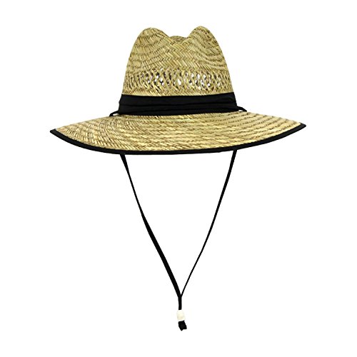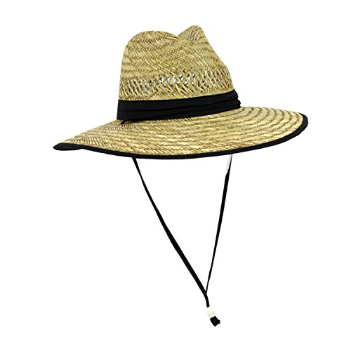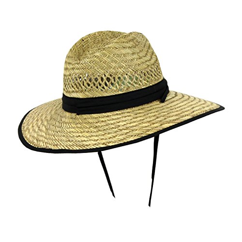 Mens UPF 50 Wide Brim Natural Straw Lifeguard Outback Sun Hat