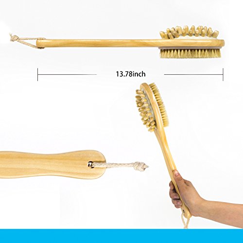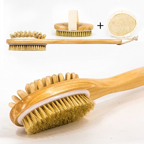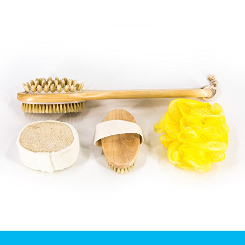 Nugilla Bath Body Brush Set with Long Handle for Back Scrubber, Dry Brushing, Loofah Pad Sponge for Body Exfoliating