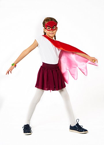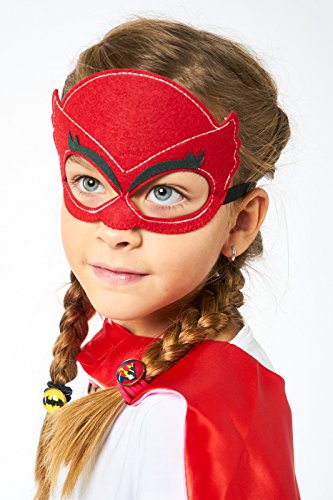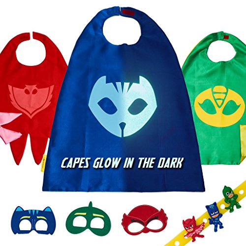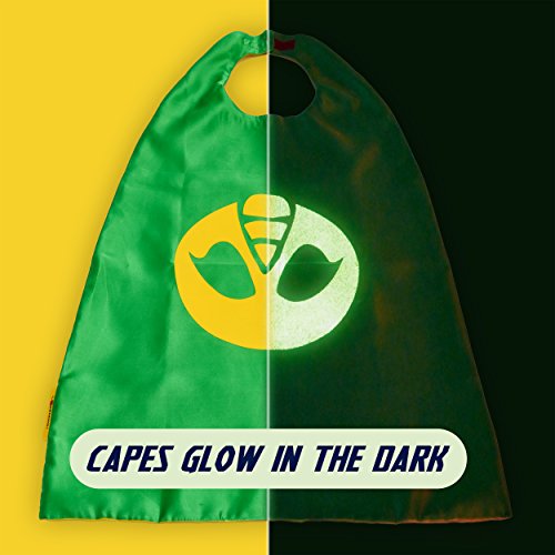 -. Feature : ✅ CREATIVE PLAY! As parents, we want our kids to spend as much time playing creatively, and less time watching TV, right?! What could be more fun than pretending you're Catboy, Owlette, or Gekko? Your sweet child can run extra-fast like Catboy, pretend to fly like Owlette, and demonstrate super-strength like Gekko as they save the day like never before with their very own premium PJ Mask Cape and Costume Gift Set. Great for boys and girls ages 3 to 10 years old. / 🎃 GREAT HALLOWEEN & DRESS UP COSTUME TO ENJOY ALL THE YEAR... If your kids are like most children, they probably love playing dress up- daily. With our popular PJ Mask costume kit, your kids can enjoy wearing their glow in the dark costumes while they go trick-or-treating, or just playing heroes with friends. They can enjoy the magic of playing PJ Masks all year long! / 👏 ENCOURAGES IMAGINATION AND CREATIVITY- One of the greatest parts of childhood is being able to play dress up toys and costumes. The power of budding imaginations is truly magical. With our premium quality PJ Masks Cape and Mask set, you can encourage more hours of screen-free fun! It can be worn over pajamas or regular shirts and clothing. Imagination is like building a muscle, the more you use it, the bigger it gets! / 🎁 MAKES A PERFECT BIRTHDAY OR CHRlSTMAS GIFT! If you are looking for a great gift that has that "extra-cool and exciting" wow factor, then you will definitely love our LÆGENDARY ® PJ Masks Costume Set. It comes with 3 premium glow-in-the-dark capes and masks, for Catboy, Owlette, and Gekko. This stitching is extra soft to eliminate itchiness and scratchiness. The set also includes BONUS bracelets with three Catboy, Owlette, and Gekko charms that can also be used as shoes charms for C.R.O.C.S. / 💛 ONLY THE BEST FOR YOUR LITTLE ONE...We P.R.Ide ourselves on providing top quality products and service for our amazing customers. We created our PJ Mask Costumes with extra care and attention-to-detail to provide the best "dress-up" experience for your sweet child. You can add your PJ Masks Costume Set to your cart with total peace of mind, knowing that if you aren't 110% happy with your purchase then we'll provide you a full refund.