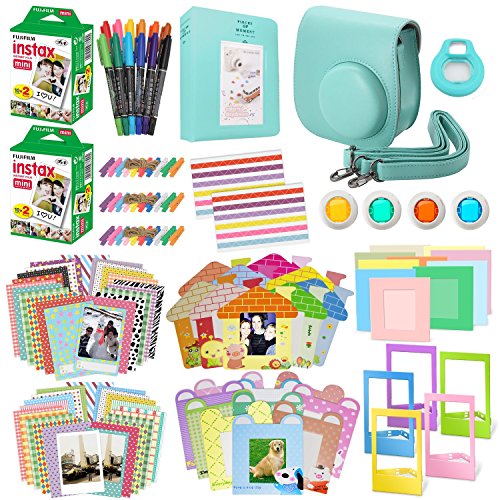 135 PIECE ACCESSORY KIT CONTAINS: 40 sheets of Fujifilm INSTAX Mini Instant Film, 1 Case, 1 Album, 4 Close up filters, 12 Marker pens, 10 Paper frames, 10 Bunny paper frames, 9 House Frames, 5 color plastic frames, 1 Selfie mirror lens, 2 sheets of corner stickers, & 40 piece film stickers