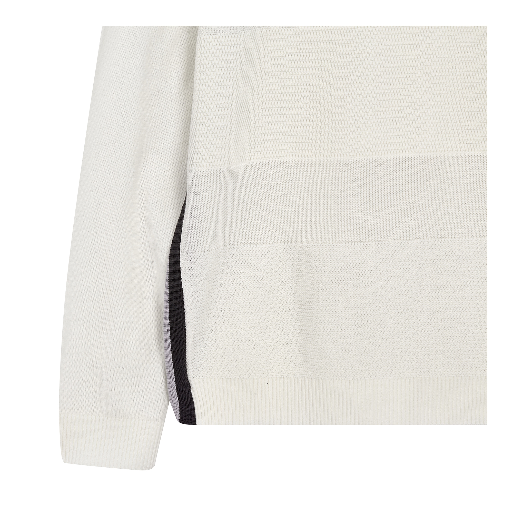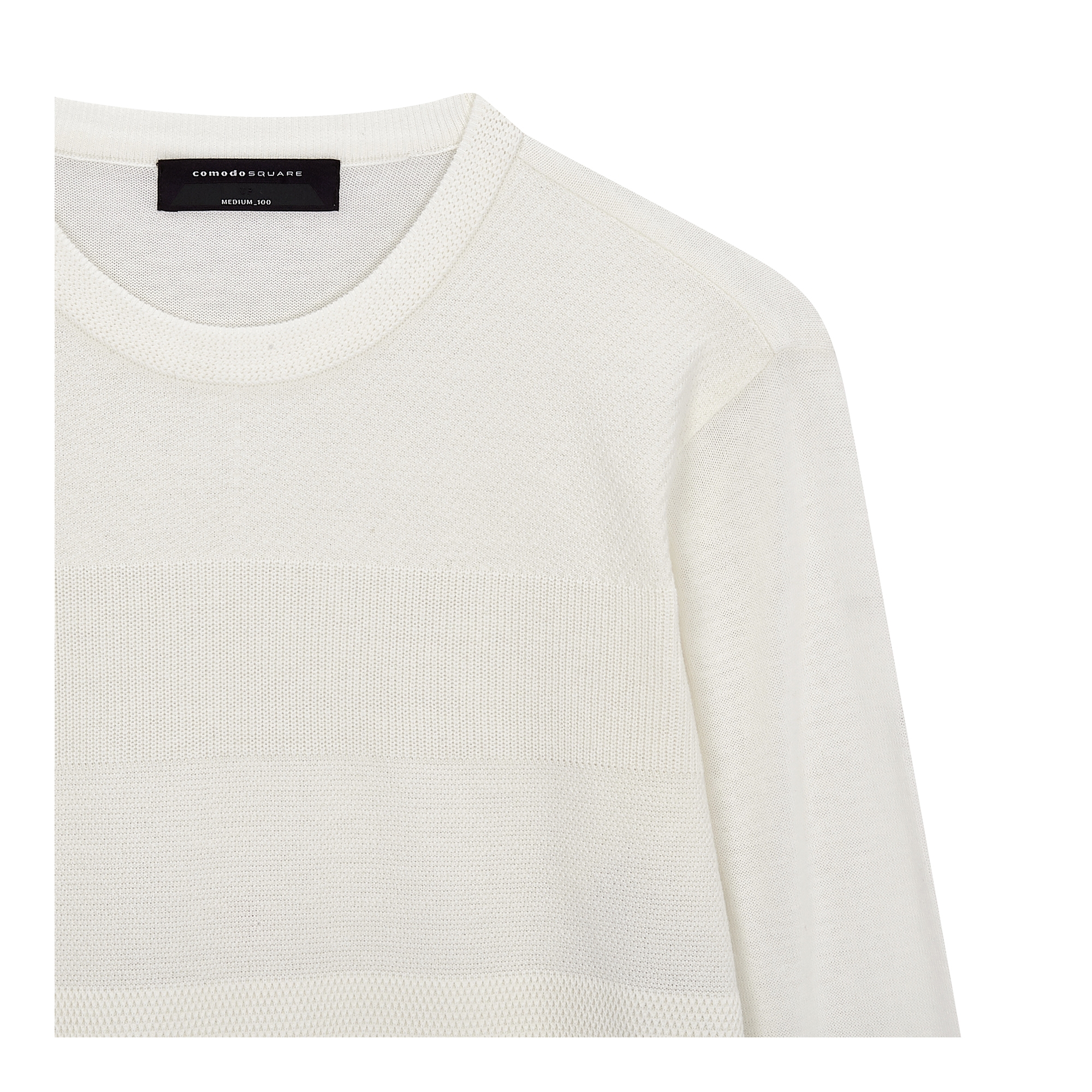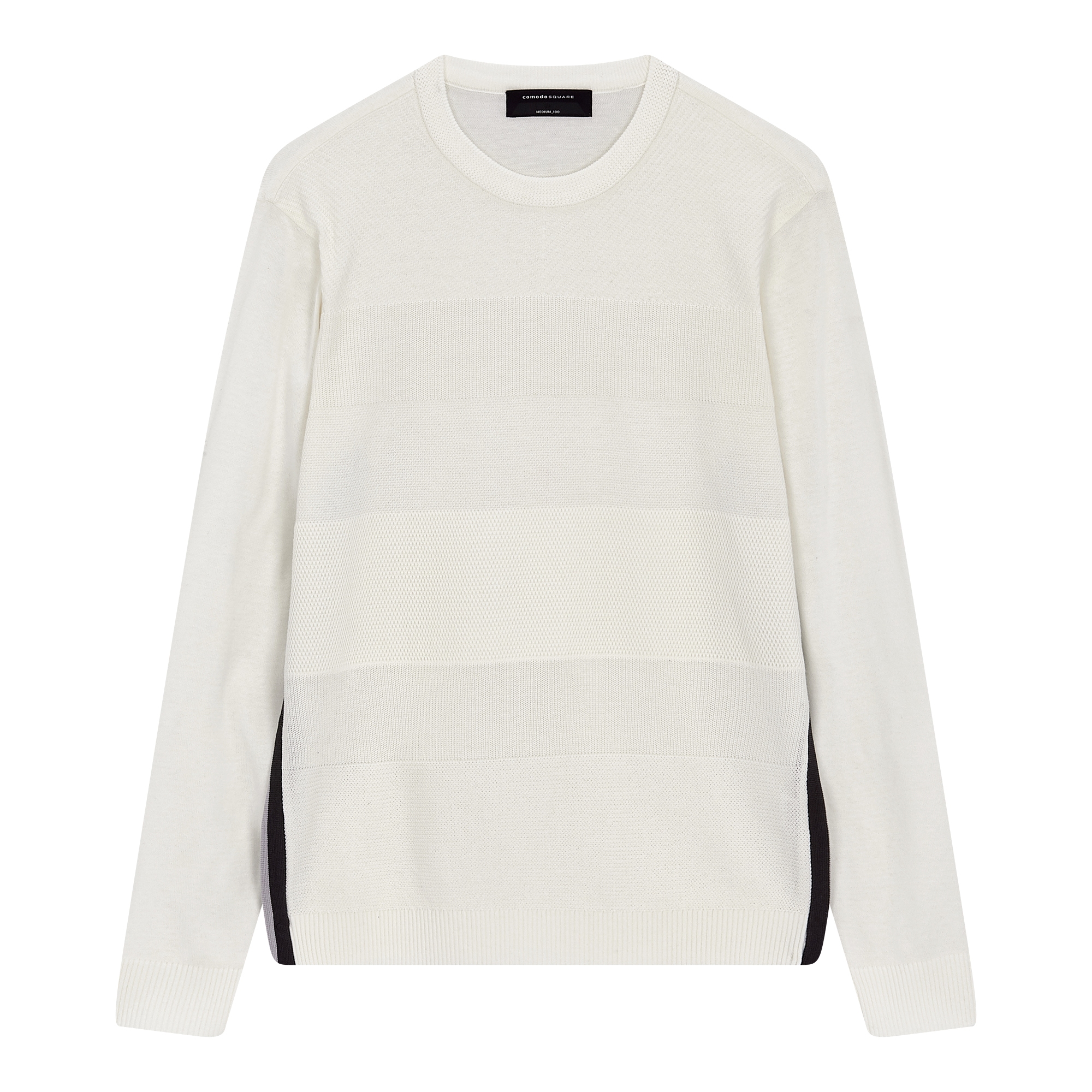 컬렉션 : 2018 Spring/Summer 디자인 포인트 : - 캐주얼한 짜임 배색 디테일이 돋보이는 화이트 컬러 니트- 라운드넥 디테일과 베이직한 핏을 가진 포멀한 디자인- 면 혼방 소재로 부담없이 스타일링 가능한 아이템 스타일링 추천 : 다양한 치노 팬츠 혹은 슬랙스 팬츠와 포멀하게 스타일링 할 수 있음