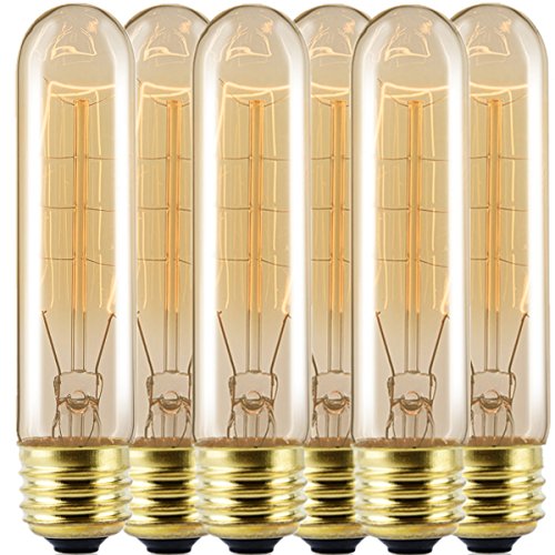 Licperron E26/E27Base T10 Tubular Edison Bulb 60W Vintage Style Warm White 2300K Antique Dimmable Light Bulb,Pack of 6