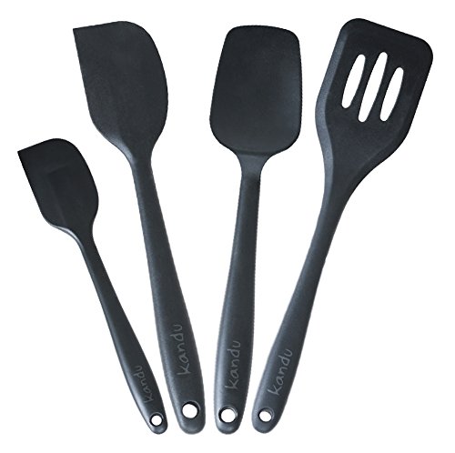 -. Title : Kandu Silicone Spatula Kitchen Set of 4 Best Solid Hygienic Heat Resistant Baking & Cooking Utensils - Spoonula Large & Small Spatulas plus Slotted Turner in Premium Nonstick Charcoal Color
