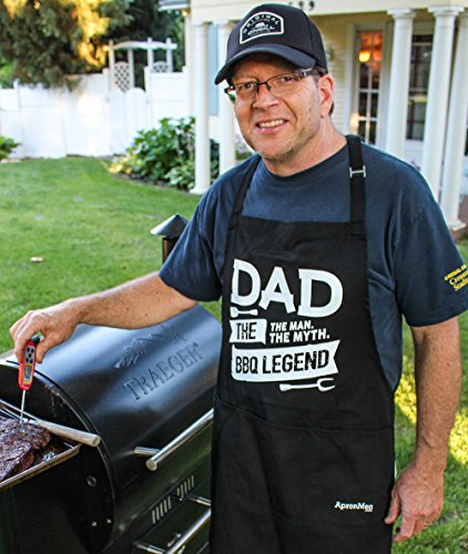BBQ Grill Apron - Dad. The Man. The Myth. The Legend - Funny Apron For Dad - 1 Size Fits All Chef Apron High Quality Poly/Cotton 4 Utility Pockets, Adjustable Neck and Extra Long Waist Ties