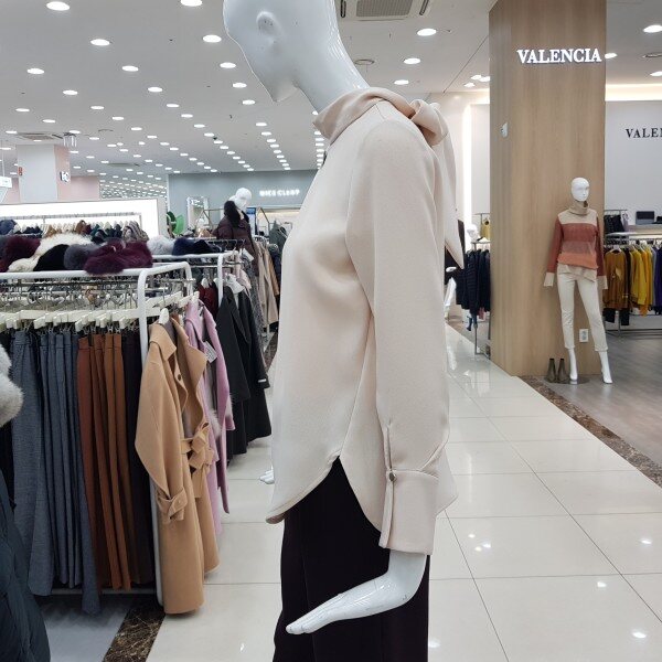 여성스러운 블라우스로 넥선끈은 뒷선에묶거나 앞쪽으로 둘러 스카프느낌으로 연출하셔도좋습니다.