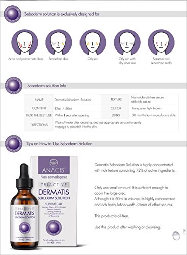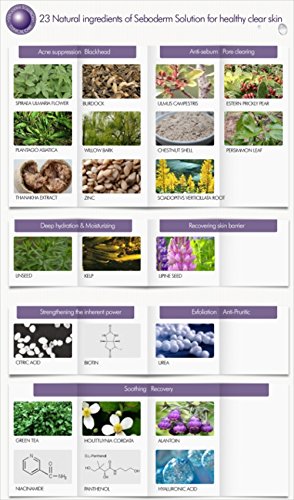 ANTI SEBUM SOLUTION Lightweight and delicate formulation that helps in regulating the seborrheic glands and improving the cells' cohesion for a clean and fresh skin texture. Each ingredient in the Seboderm Solution is highly effective due to it's rich content. It's all-in-one solution that has all necessary functional ingredients to enhance "troubled skin" such as keratin care ,control, alleviation, strengthening, rejuvenation, hydration, and prevention of dehydration. Main ingredients : Houttuynia Cordata Extract, Meadow Suite Extract, Arctium Lappa Root Extract, Zinc Sulfate and other NO : STEROID, PARABEN ,BENZOPHENONEFeature