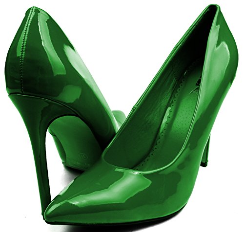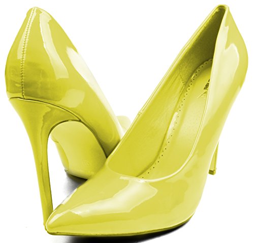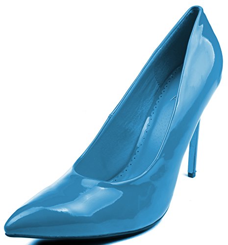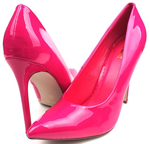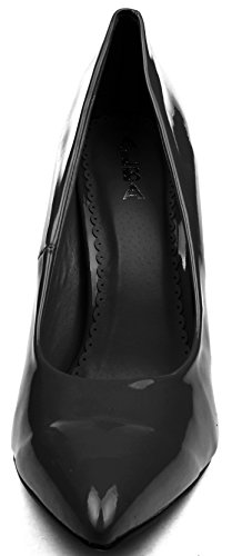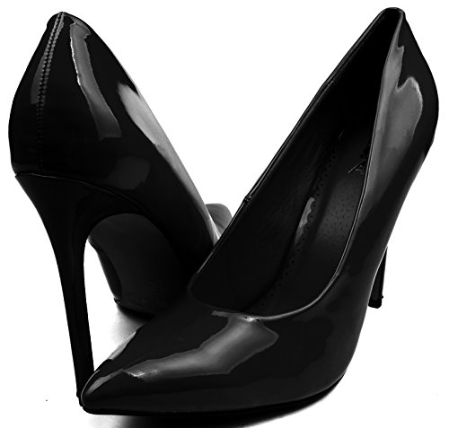 | Enimay Women's 5 Inch Heel Microfiber Patent Leather Closed Toe Dress Pumps |