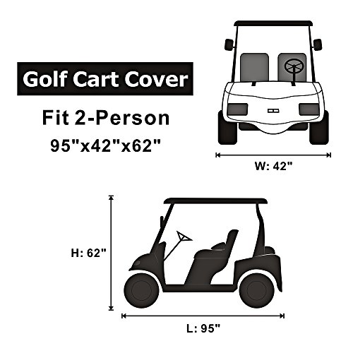 Product Description Protect for most types of Golf Carts,Fits 2-Person's up to 95"L x 42"W x 62"H