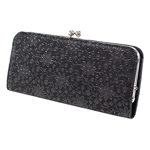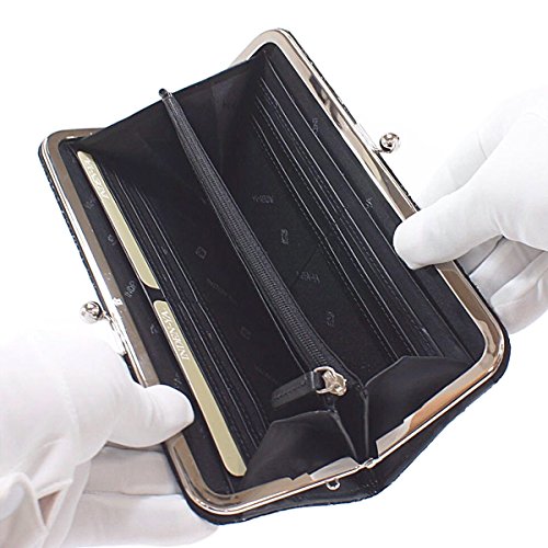-. Title : INDEN-YA 印傳屋 印伝 財布 長財布 がま口 レディース 女性用 黒×黒 クレマチス 2316-01-169