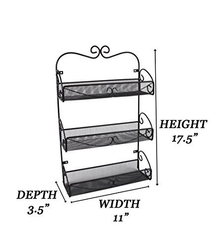 JMiles UH-SR245 3-Shelf Wall-Mounted Spice Rack - Hanging Shelf Rack for Kitchens, Bathrooms, and More - Storage Solution for Spices, Cosmetics, Soaps, and More