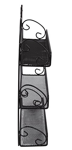 Elegant Appearance: Functional multi shelf unit elegantly enhanced by flowing scrollwork accents and demure matte black finish
