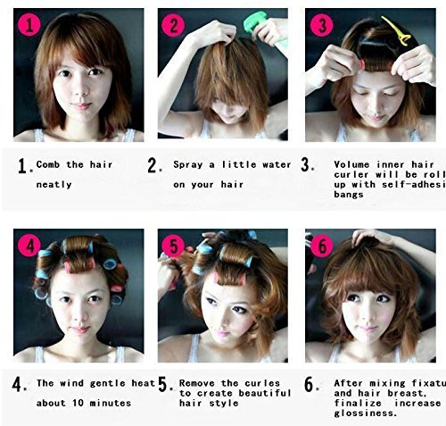 4. Damp the hair slightly before,use gel water after remove the hair rollers,fleeciness effect will be better.