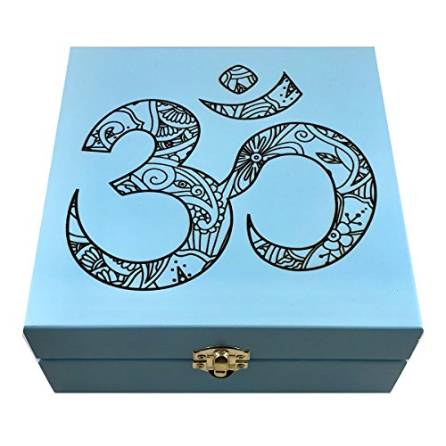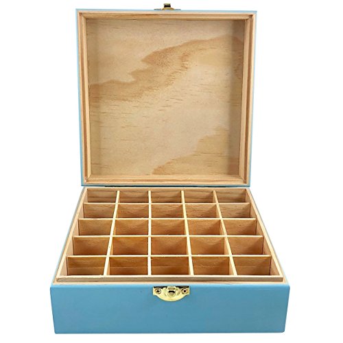 Yoga Ohm Box - Essential Oil Storage Box 25 Slot 5ml - 15ml - Pine - Custom Laser Engravings - Fit doTERRA, Young Living, All Major Brands (Sky Blue)