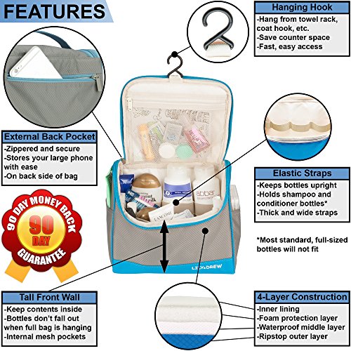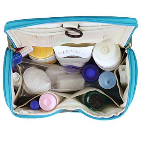Hanging Travel Toiletry Bag or Cosmetics Makeup Case, Shaving Kit, Electronics Organizer (Blue)