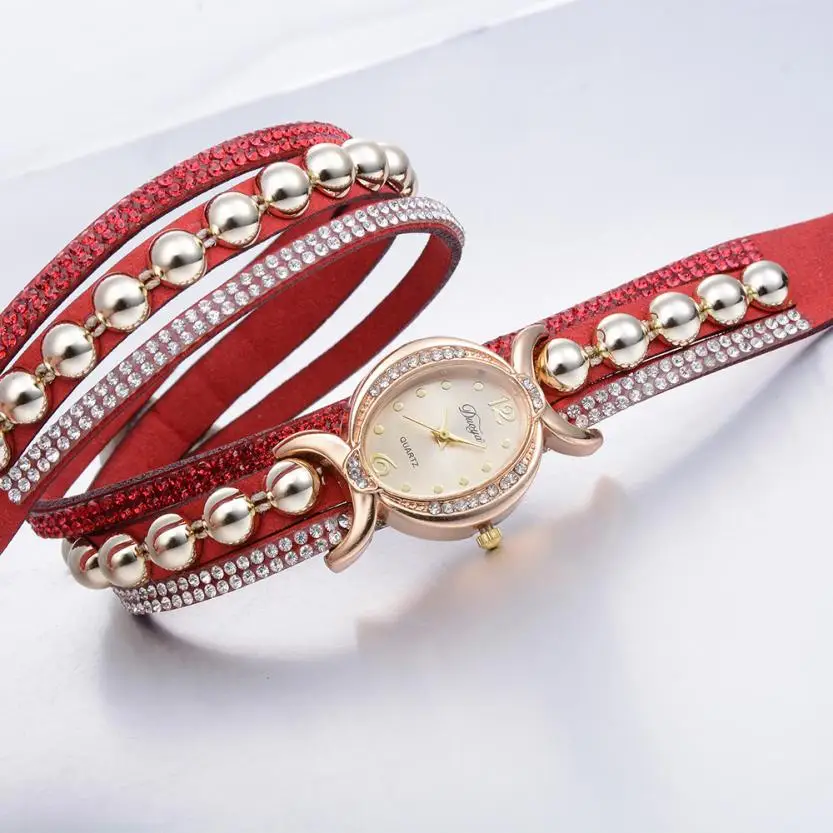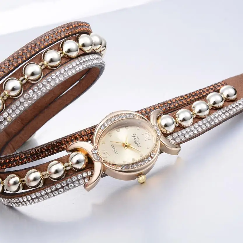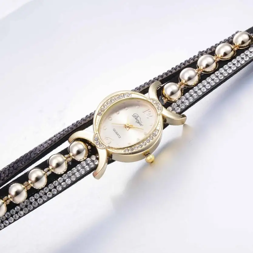 | [해외] Duoya 정품 가죽 캐주얼 석영 시계 다이아몬드 럭셔리 브랜드 여성의 팔찌 시계 Reloj Mujer Marcas Famosas |