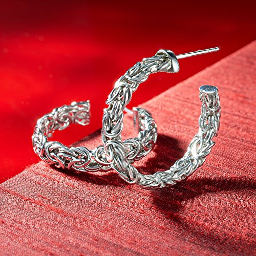 Sterling silver, handcrafted Byzantine hoop earrings for women.