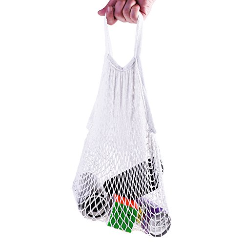 BCP 2pcs Cotton New Fashion Woven Net Mesh Ecology Shopping Tote Shoulder and Carrying Bag for Fruits Vegetables Toys