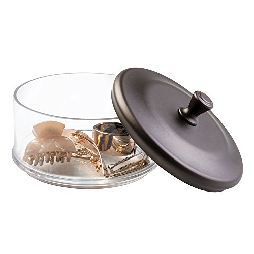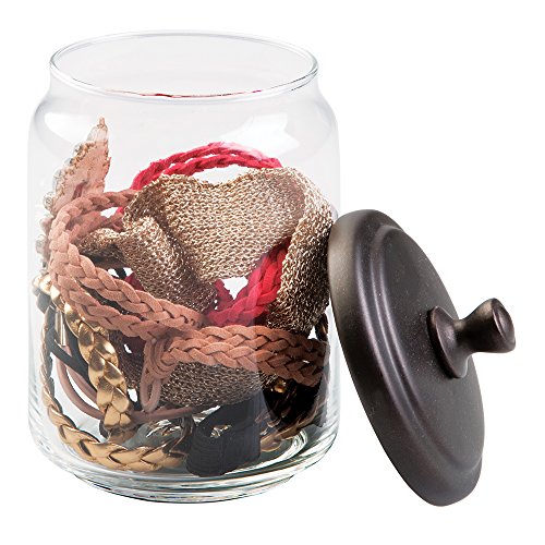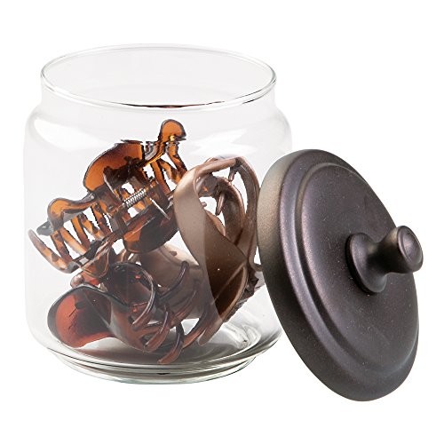mDesign Hair Care and Accessories, Canisters for Bathroom Vanity to Hold Clips, Elastics, Bobby Pins, Barrettes - Set of 3, Clear/Bronze