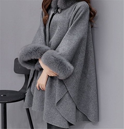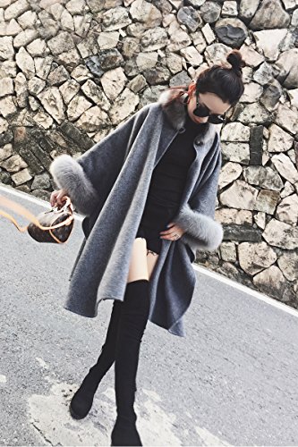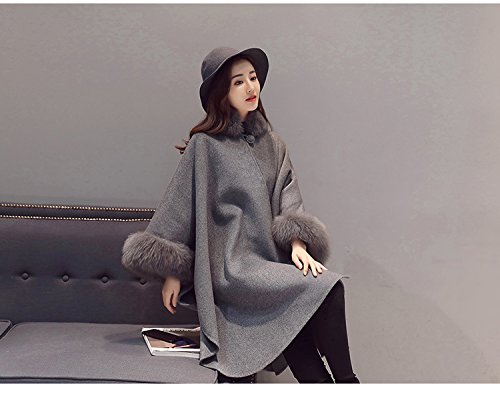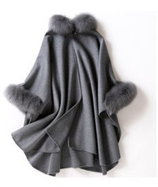 -. Title : Kan Sei+(カンセイ)レディース ポンチョコート ファー付き 欧米風 アウター 通勤 体型カバー