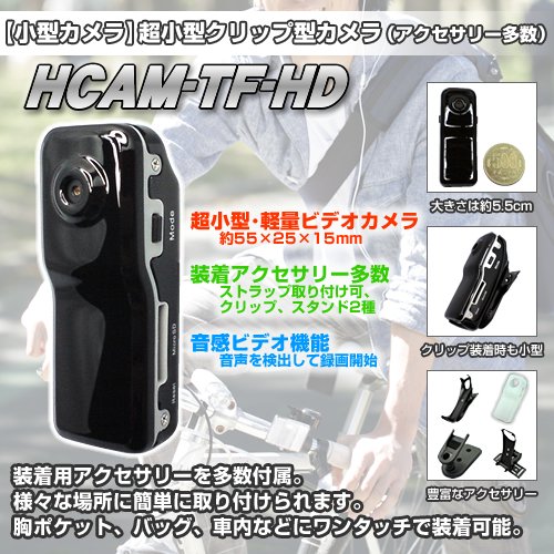 ● Can be easily attached to the breast pocket ● Five kinds of fitting accessories attached ● Video shooting with sound detection function ● Micro SD use Ultra small size of about 55 × 25 × 15 mm ● Sound detection with the sound detection function