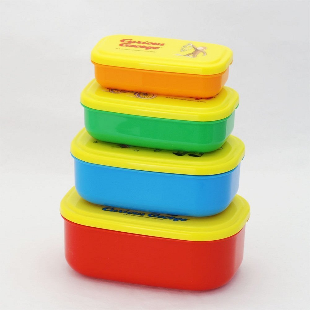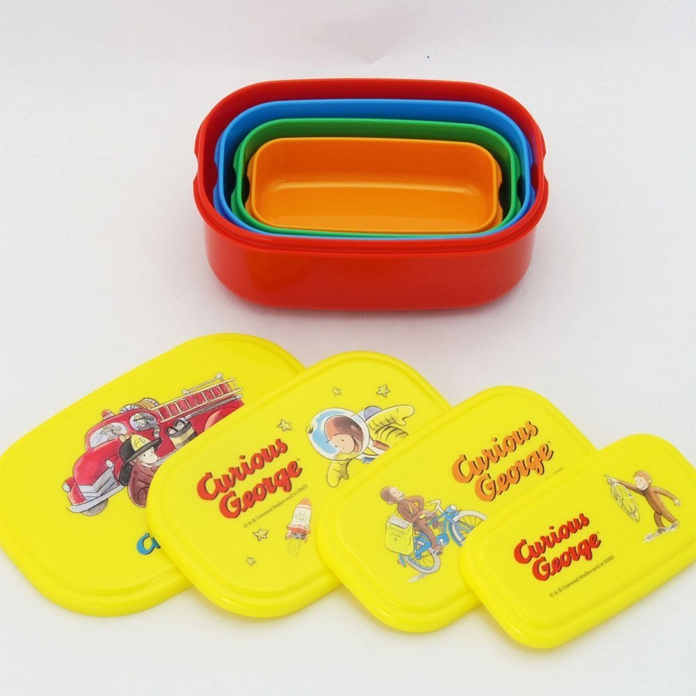 Curious George Design Nesting Microwavable Food Storage Lunch Box Set of 4pcs