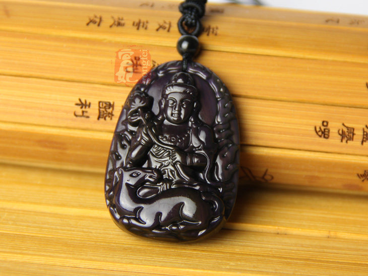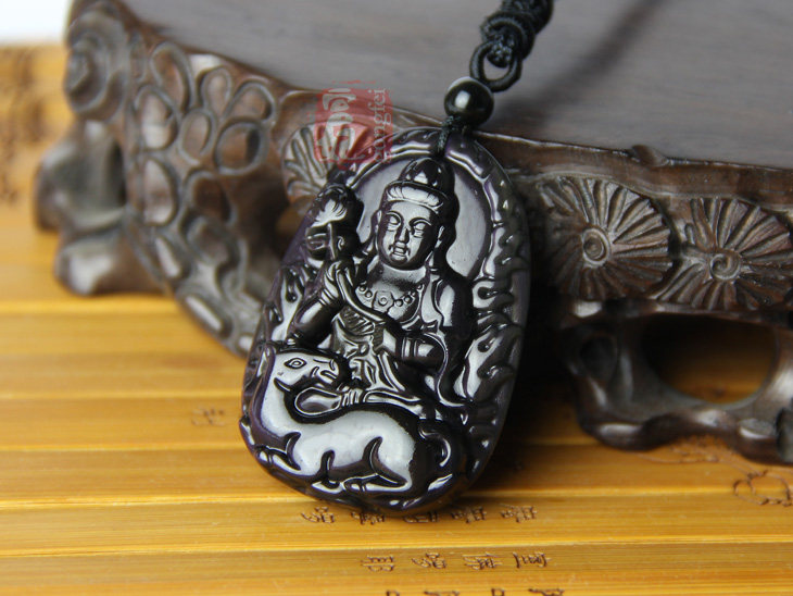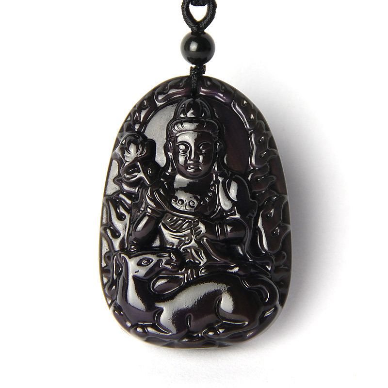 开光天然彩虹眼黑曜石 大势至菩萨生肖马守护神本命佛吊坠
