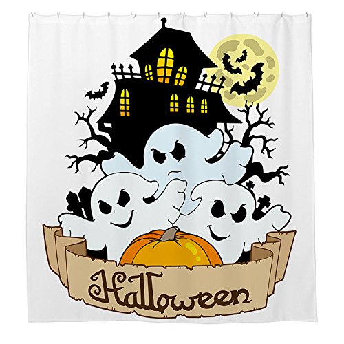 -. Title : JKYUKO Happy Halloween Ghost And Pumpkin Polyester Waterproof Shower Curtain