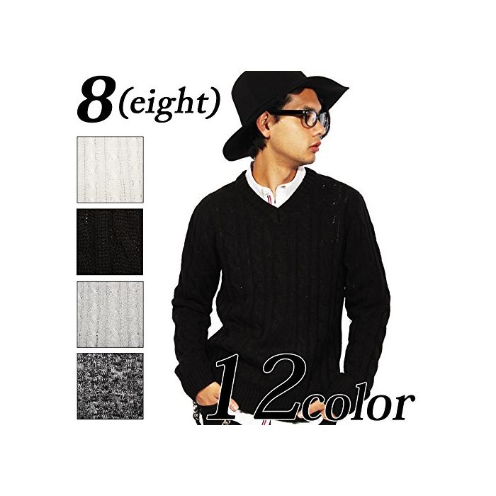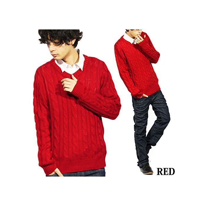원본상품명: (エイト) 8(eight)12color ケブルニット Vネック ニットセタ 厚手 ざっくりニット レッド M