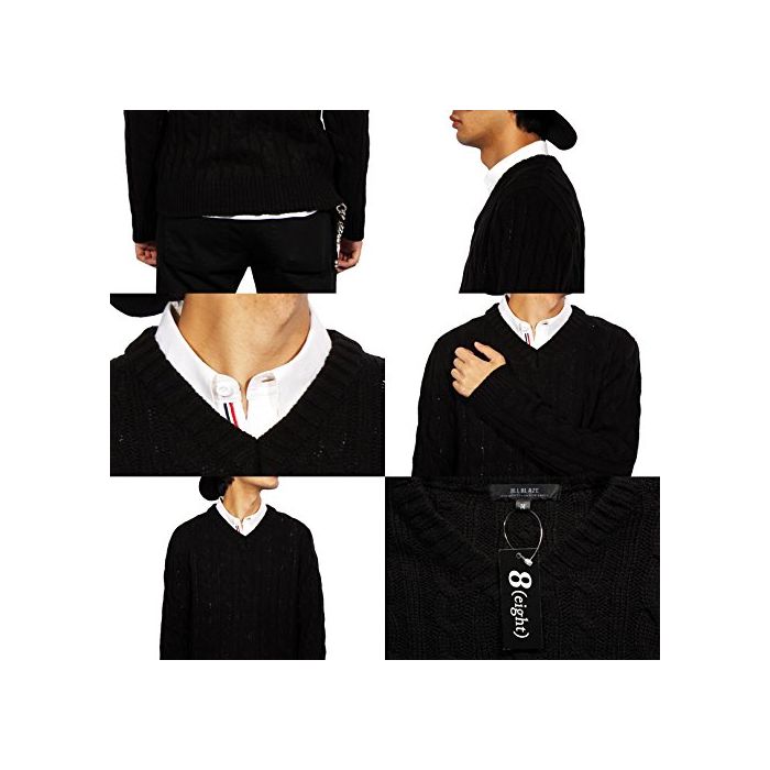 (에이트(eight)) 8(eight)11color 케이블 니트 V넥 니트 스웨터 바탕이 두꺼운 것 듬성듬성 니트 M 레드