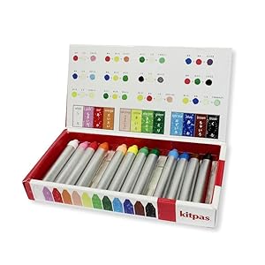 【セット内容】キットパス紙巻:白、黄、薄橙、橙、桃色、赤、黄緑、緑、水色、青、茶、黒、各色1本、計12本