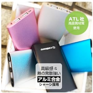Cellevo 6,000mAh アルミ合金薄型モバイルバッテリー ピンク 4in1充電ケーブル付属