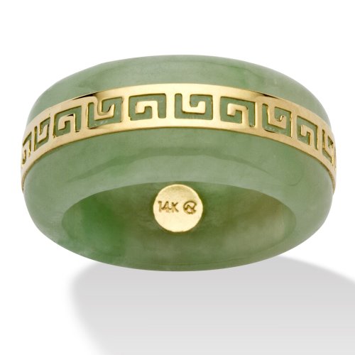 -. Title : Genuine Green Jade 14k Yellow Gold "Greek Key" Ring