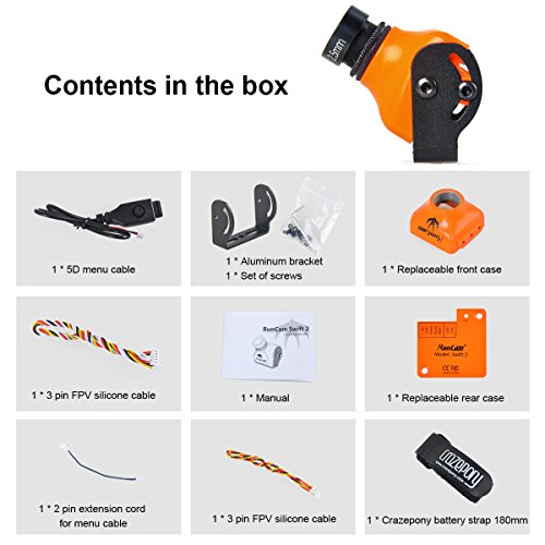 Crazepony RunCam Swift 2 600TVL FPV Camera 2.5mm 130 Degree OSD WDR DC 5-36V NTSC Integrated MIC for Multicopter Orange