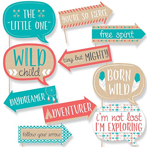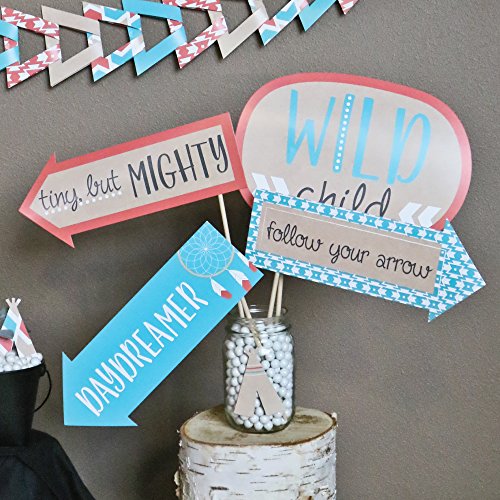 10-Piece Funny Be Brave Little One Photo Booth Props Kit INCLUDES 10 Coral and Teal arrow and speech bubble photo booth props, 10 wooden dowel sticks and adhesives for assembly. EASY ASSEMBLY: Simply attach the printed DIY photo booth props to the wooden dowels with included adhesive and reinforcing stickers.