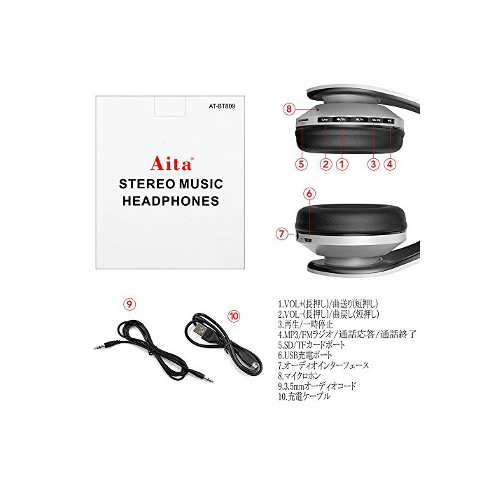 원본상품명: Aita Bt-809 ブルトゥス ヘッドホン 高音質 密閉型 マイク付き スマホ/タブレット/パソコン適用 bluetooth ヘッドホン