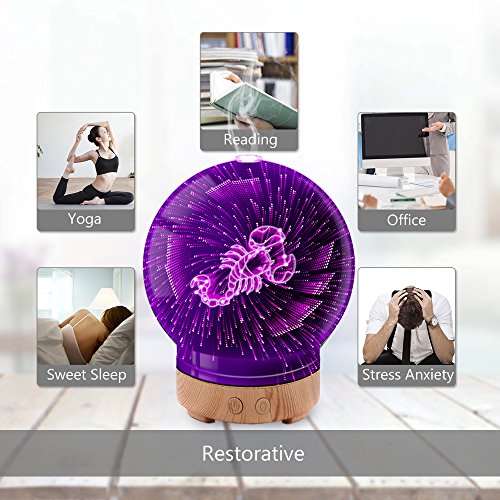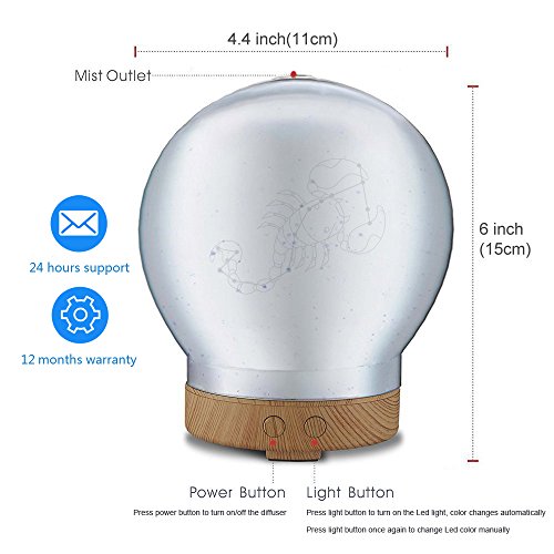 ★Stunning Design: Choose your zodiac sign and decorate with a vibrant, LED 7 color-changing 3D display essential oil diffuser that empowers your energy as a mysterious and sexy Scorpio, elegant 3D glass build makes this aroma diffuser perfect for gifts