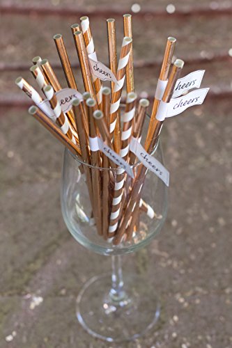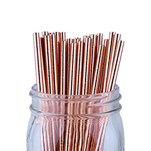 Just Artifacts Decorative Paper Straws 100pcs Solid Color Pattern - Metallic Rose Gold - Click For More Colors! Paper Straws and Décor for Birthdays, Weddings, Baby Showers and Life Celebrations!