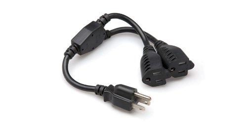 The Hosa YIE-406 Power Cord is a Y cable with one 3-prong male and two IEC female connectors. The YIE-406 is great for powering up two nearby pieces of equipment that require IEC power cords. Heavy Duty 14 AWG. Length: 1.5 ft.