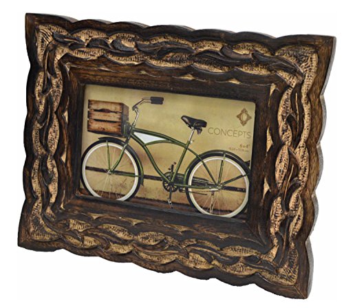 Concepts Carved Pattern Picture Frame Burnt Wood Tree Stump 6"x4"